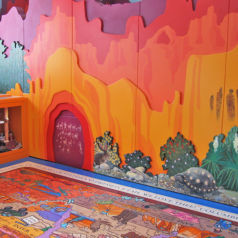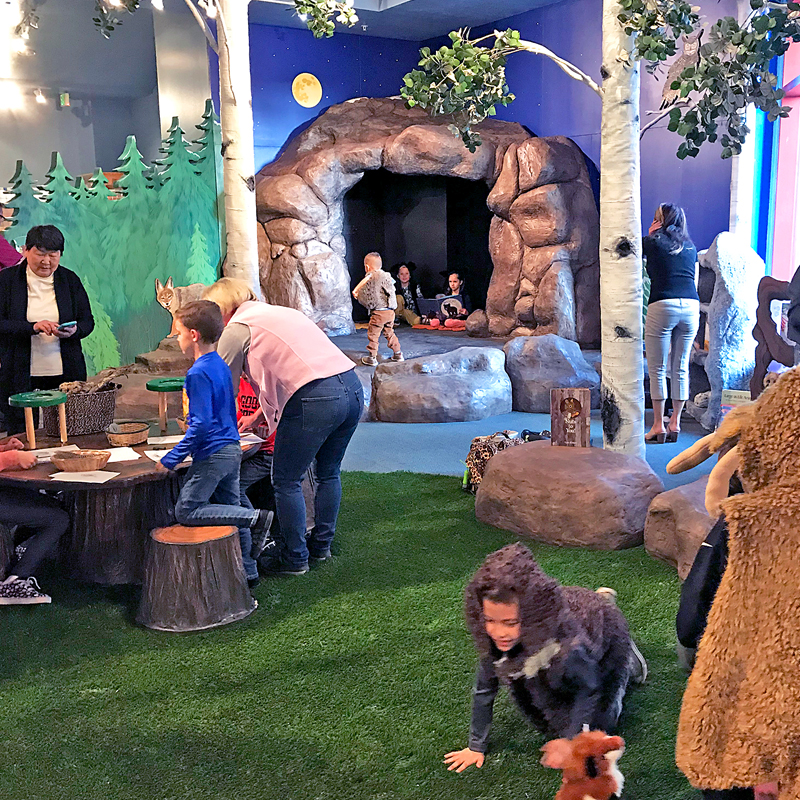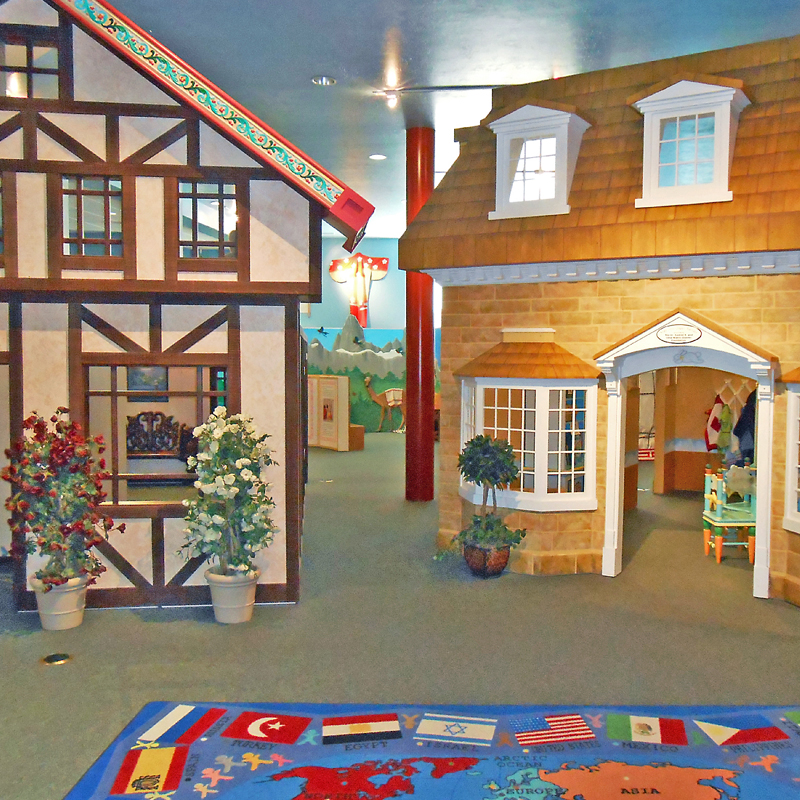 Our giant tree grows at the center of the Museum, with themed galleries branching off on two levels. Want Science and STEM activities? Don't miss the Science Circus on the Second Floor with Air Tubes, the Subaru Gravity Race Track, the Laser Table, the Quake table, and more, and the beautiful Walk in the Woods gallery also upstairs, which focuses on the native plants, animals, and birds of Utah and offers 8 touch screen games. Math is part of our 5 & Dime and our diner on our American Main Street. Like history and cultural exhibits? Then find your way to our Bar and our Farmhouse. Ride one of our hand-carved horses. Explore our World Village with houses representing both the countries and the stories children in those countries love. Like maps? So do we – really, really big maps of Utah and America! Want some art in your visit? Don’t miss the Art Garden where you can make your own colorful art, inspired by our favorite children’s book illustrators or traditional arts from around the globe. Our exhibits are meant to share information and concepts for preschoolers through elementary age children, support the school curriculum, and provide a beautiful backdrop for important imaginative play experiences.