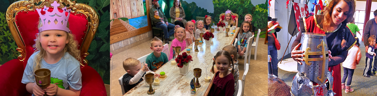 - Time to open gifts and refreshments in the Royal Party Room. Each child receives a royal goblet as a party favor and the birthday child receives a crown, too.